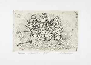 Acquaforte su velina applicata. mm 160x245. Foglio: mm 253x347. Firmata e datata sulla lastra in alto e in basso a sinistra. Firmata, titolata e numerata in basso a matita. Es. 7/50. Bellissima impressione. -