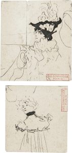 N. 2 disegni a penna e inchiostro di china. mm 56x50 e mm 42x44. Recanti entrambi timbro della collezione Sommaruga. (2). -