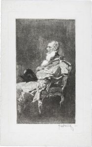 Acquaforte. mm Vives i Pique-Cuenta Garcia, 24. Rarissimo esemplare in primo stato su 4 avanti la riduzione del rame. Firmato a matita dall'artista in basso a destra. Due esemplari alla Biblioteca Nazionale di Madrid, di cui uno più pallido e rifilato. Provenienza: archivio Scipione Vannutelli.