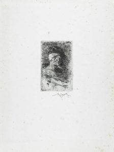 Acquaforte. mm 110x70. Foglio: mm 328x242. Vives i Pique-Cuenta Garcia, 15. Timbro riproducente la firma dell'artista in basso a destra. Esemplare appartenente alla seconda tiratura (1878) su 5, impressa su carta Cina. Provenienza Henriette Fortuny.