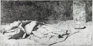Acquaforte e acquatinta. mm 215x405. Foglio: mm 410x570. Vives i Pique-Cuenta Garcia, 2. Firmata e datata «Roma 1867» sulla lastra in alto a destra. Titolata sulla lastra in basso al centro. IV stato su 4. Esemplare appartenente a una tiratura non conosciuta, tra la prima e la seconda tiratura (1873 ca.), su 6. A differenza della seconda non reca il timbro con la firma e il N°2 in alto a destra mentre rispetto alla prima “avant la lettre” reca il titolo in basso al centro ma debolmente inciso. Bellissima impressione perfettamente inchiostrata, stampata su carta bianca. Ampi margini. Lievissime fioriture nel margine inferiore. Provenienza Henriette Fortuny.