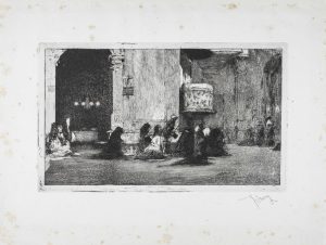 Acquaforte e acquatinta mm. 150x250. Foglio mm. 245x330. Vives i Pique-Cuenta Garcia, 21. Timbro con firma dell'artista in basso a destra. Esemplare appartenente alla seconda tiratura “avant la lettre” (1878) su 5. Secondo stato su 2. Impressa su carta Cina. Lievi, sporadiche fioriture ai margini. Bellissima impressione. Provenienza Henriette Fortuny.