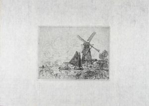 Barthold Johan Jongkind , Moulins en Hollande (Rotterdam). 1867