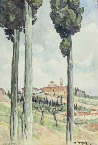Acquarello. mm 285x192. Firmato in basso a destra: "A. Micheli - Firenze". -