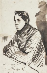 Penna e inchiostro. mm 210x135. Firmato e datato “26-11-1907”. Infinestrato in passe-partout e fermato con adesivo e colla.