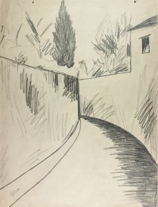 Matita nera su grande foglio d'album. mm 495x375. Firmato "Rosai" in basso a sinistra. Due fori nel margine superiore. Una piccola macchia verso il centro.