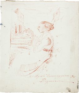 Penna e inchiostro rosso. mm 190x160. Firmato e datato in basso a destra a penna: “27 agosto Riomaggiore 94 /TSignorini”. Frammenti di carta incollata al verso.