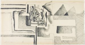 Inchiostro su carta. mm 450x215. Firmato a penna in basso a sinistra: “Survage” seguito dal n. 4. Infinestrato con passe-partout. Lieve Ingiallitura uniforme.