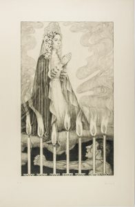 Dal ciclo di 3 incisioni Humana virtutum ingenia. A matita in basso ai lati: «a.n. - Dario Wolf». Bibl.: A. Weber (a cura di), Dario Wolf, con un testo di A. Audoli, catalogo mostra Torino 2004, p. (26); P. Assmann, A. Audoli, Dario Wolf, catalogo mostra Linz 2007, Linz 2007, p. 57; E. Bardazzi (a cura di), Sigmund Lipinsky - Dario Wolf e altri maestri dell 'incisione simbolista, catalogo mostra, Roma 2012, Rignano Flaminio 2012, n. 32. -