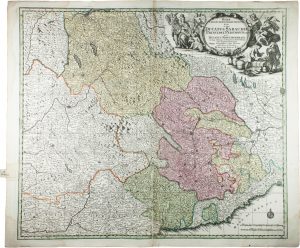 Incisione in rame con coloritura coeva. mm 505x590, con margini. Titolo in alto a destra entro cartiglio e figure allegoriche. Tratto dall'opera di Mattheus Seutter, Atlas Novus sive Tabulae Geographicae totius orbis faciem, partes, imperia, regna et provincias exhibentes exactissima cura iuxta recontissimas observation, 1740. Strappo riparabile al centro, lungo la piega centrale.