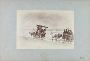 Carovane trainate da bovi sul mare. 1880 ca.