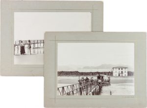 Lotto di 2 fotografie. mm 160x115 ca. Supporto su cartoncino: mm 250x170 ca. Al cartoncino cornice di filetto dorato attorno alla fotografia e impressione a secco "T. Marzichi" nel margine inferiore destro. (2). Marzichi Lenzi Tedaldo, fotografo appartenente alla Società Fotografica Italiana, vincitore di numerosi premi e riconoscimenti. Sara Ragazzini, Fotografi a Firenze 1839-1914 (in AFT Archivio Fotografico Toscano, n.39-40, 2004.)
