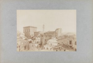 Fotografia all'albumina. mm 170x122. Supporto su cartoncino: mm 260x180. Altra veduta su tema omogeneo con Palazzo Vecchio sullo sfondo. -