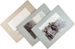 Fotografie all'albumina. Mm 170x122. Supporto su cartoncino: mm 260x180. Al verso del primo cartoncino, a matita “Marsiliana, 9 dicembre 1888, Merico-guado dal Begna Mulino”; al verso del secondo, a matita “Marsiliana, 1889, Braccaiolo burrasca”; al verso del terzo, a matita: “In capocaccia Denci Domenico presso la Marsiliana”.Questa foto è riprodotta in Monti e poggi toscani. Firenze: Istituto micrografico italiano, 1908 ed in Aspetti della fotografia toscana dell'Ottocento. Firenze: Alinari, 1976. (3). -
