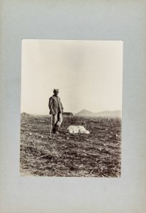 Fotografia all'albumina. Mm 122x170. Supporto su cartoncino: mm 260x180. Al verso scritto a matita “Maremma, gennaio del 1889, Marsiliana. Pecoraio nel suo costume alla vergheria”. Questa foto è riprodotta in Aspetti della fotografia toscana dell'Ottocento. Firenze: Alinari, 1976. -