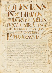 1760 ca. QUESTIONES IN 8 LIBROS OHISRUM ARLIS IUXTA MIRA ANGELICI DOCTORIS DE T. ET EIUS SCOLAE DOCTRINA. Manuscrito en 8º mayor. Aprox. 200 folios manuscrito. Enc. de época en pergamino.