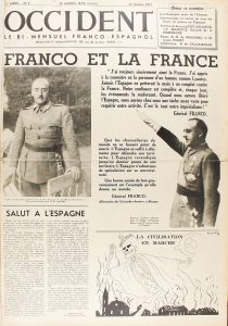 1937. (GUERRA CIVIL). OCCIDENT. Le bi-mensuel franco-espagnol. Paris: Imprimerie Georges Lang, 1937-1939. 39 números en folio mayor, desde num. 1 del 27 de Octubre de 1937 al num. 39 del 30 de Mayo de 1939. 8 p. cada número excepto nums. 20, 32 y...