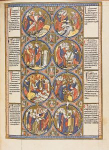 1984. (FACSIMIL). BIBLIA MORALIZADA. Madrid: Adeva y Ediciones de Arte y Bibliofilia, 1984. Folio mayor. 60 h. aprox. imitando pergamino con la reproducción de las ilustraciones medievales, con dorados. Enc. en plena piel gofrada. Nervios y...