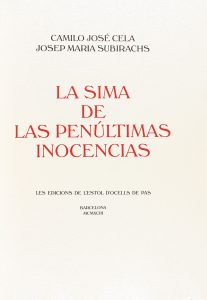 1993. (BIBLIOFILIA). CELA, CAMILO JOSE; SUBIRACHS [ilustrador]: LA SIMA DE LAS PENULTIMAS INOCENCIAS. Barcelona: Les Edicions de l`Estol d`Ocells del Pas, 1993. Folio mayor. Consta de sesenta y cuatro láminas con textos manuscritos (el último es...