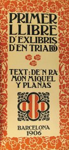 1906. (EX-LIBRIS). MIQUEL I PLANAS, RAMON: PRIMER LLIBRE D`EXLIBRIS D`EN TRIADO. Barcelona: Elzeviriana, 1906. Folio alaragado. 36 hojas. Texto orlado e ilustraciones de Triadó. Rústica original. Buen estado de conservación. Edición limitada de...