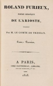 1828. (LITERATURA). TRESSAN, LE COMTE DE: ROLAND FURIEUX POEME HEROIQUE DE L´ARIOSTE. Paris: chez Dauthereau libr., 1828. 8 vols. en 12º. I: 201 p.; II: 245 p.; III: 221 p.; IV: 202 p.; V:228 p.; VI: 210 p.; VII: 206 p.; VIII: 209 p. Enc. en plena...