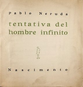 1926. (1ª EDICIÓN). NERUDA, PABLO: TENTATIVA DEL HOMBRE INFINITO. Santiago: Tall. de la Editorial Nascimento, 1926. 4º cuadrado. 24 h. (blancas 3 de ellas). Enc. tela moderna, con tejuelo en el plano superior, conservando las cubiertas...