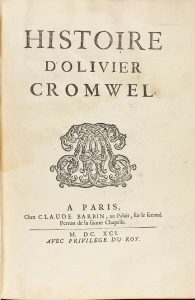 1691. (HISTORIA). HISTOIRE D´OLIVIER CROMWEL. Paris: chez Claude Barbin, 1691. 4º mayor. 10 h. + 433 p., 10 h. Retrato de Cromwel montada en una hoja blanca a modo de frontis. Antiguo cerco de humedad. Enc. en plena piel, nervios, tejuelo, cortes...