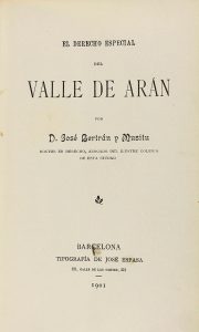 1901. BERTRAN Y MUSITU, JOSE: EL DERECHO ESPECIAL DEL VALLE DE ARAN. Barcelona: José Espasa, 1901. 8º. 158 p. Enc. reciente en media tela. Papel de hilo. Palau 28574.
