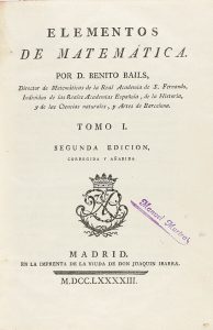 1783-1804. (CIENCIAS). BAILS, BENITO: ELEMENTOS DE MATEMATICA. Madrid: Imp. viuda Joaquin Ibarra, 1783-1804. 10 vols. en 4º menor. I: LXVIII + 597 p., 29 láms. plegadas; II: XVI + 418 p., 51 láms.; III: XLIV + 579 p., 25 láms.; IV: XLIV + 534...