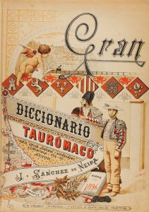 del modo de ejecutar cuantas suertes antiguas y modernas se conocen, lo cual constituye el más extenso ´Arte de torear´, tanto a pié como a caballo, que se ha escrito hasta el día; biografías, semblanzas, bocetos y reseñas de escritores, artistas, lidiadores, y otras personas que con sus talentos, influencias o de cualquiera manera han contribuído al fomento de nuestra Fiesta Nacional, ganaderías, hierros, divisas, plazas, instrumentos de toreo, etc...Nueva edición, corregida y notablemente aumentada por su autor. Madrid: R. Velasco, 1896. XVI + 1068 p. y 4 h. Frontispicio en color, 1 lámina con el retrato del autor, e infinidad de grabados dentro del texto. Enc. en media piel con los planos decorados. Palau 295849. Díaz Arquer 1633.