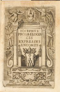 1664. (HUMANIDADES). HIERONYMO, CAMILLI A. S.: IOSEPHUS PROSA-ELOGIACIS EXPRESSUS ENCOMIIS SEU VITA, ET VIRTUTES VERENAB. DEI SERVI. Romae: Typis & sup. Fabii de Falcho, 1664. 8º menor. Frontis grabado + 19 h. + 316 p., 2 h. Viñetas. Retrato...
