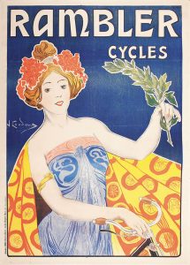 1900. (BICICLETAS). CARDONA, J.: RAMBLER CYCLES. 130x94,5cm. (51,4x37,3in.). Litografía. A-. Entelado.