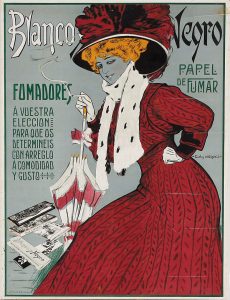 1900 ca. (PUBLICIDAD). VAZQUEZ, CARLOS: BLANCO Y NEGRO. PAPEL DE FUMAR. Valencia: Lit. S. Durá. 54x38,5 cm. (21,2x15,2 in.). B +. Con sutiles y pequeñas marcas de doblez. Soporte metálico en el borde superior e inferior.