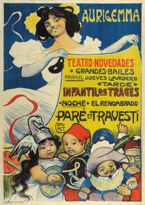 1905 ca. (FIESTAS Y CARNAVALES). BRUNET. TEATRO NOVEDADES. BAILES DE CARNAVAL, BARCELONA. 108x74cm. (42,5x29in.). Litografía. A-. Entelado.