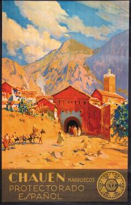 1939 ca. (TURISMO). BERTUCHI, M.: CHAOUEN. MARRUECOS PROTECTORADO ESPAÑOL. Valencia: Lit. S. Dura. 100x70 cm. (39,4x27,8 in.). A -.