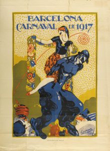 1917. (FIESTAS Y CARNAVALES). BARCELONA. CARNAVAL DE 1917. 108x80cm. (42,5x31,5in.). Litografía. B+.