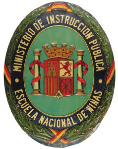 1940 ca. (DICTADURA). MNISTERIO DE INSTRUCCION PUBLICA. ESCUELA NACIONAL DE NIÑAS. Barcelona: Imprenta Elzeviriana Y Librería Camí. Plac de metal ovalada. 59x46,5 cm. (23,2x18,4 in.). Faltas de esmalte en los bordes.