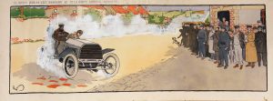 1905 ca. (AUTOMOVILISMO). [ELIOTT, H.]: DE KNIFF SA VOIT ´PANHARD´. 2º DE LA COUPE GORDON-BENNETT. Litografía iluminada. 28x75 cm. (11x29,6 in.). A -.