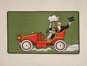 1904. (AUTOMOVILISMO). [DEPOSITATA]: ROME 24-28 AVRIL 1904. (VIAJE OFICIAL EN AUTOMOVIL). Litografía a color. 52x72 cm. (20,5x28,3 in.). A -.