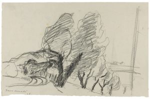1910 ca. MERCADÉ QUERALT, Jaume (Valls, Tarragona, 1887/89 – Barcelona, 1967): CONJUNTO DE DOS APUNTES DE ARBOLES SOBRE PAPEL. Lápiz sobre dos hojas papel. 15x22 cm. cada hoja.