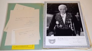 signée, 2 belles photographies en habit d’académicien, son discours de réception à l’Académie française dédicacé à M. Jouniaux et de nombreuses coupures de presse.