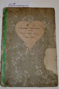 AFFAIRE DU COURRIER DE LYON. Manuscrit « Affaire Lesurques ». 1842 ; 32 pages grand in-4° (30,5 x 21,5 cm), brochées dans un étui veau maroquiné à coins dans son cartonnage à bordures de même couleur violette.Extrait de la Gazette de France...