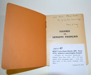 BINET Léon [Saint-Martin, 1891 - Paris, 1971], médecin et physiologiste français. « FIGURES DE SAVANTS FRANÇAIS ». Éditions Vigot, Paris, 1946 ; 120 x 155 mm, broché. Envoi autographe signé  :
