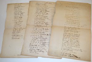 Environ une soixantaine de signatures. Très curieux document du XVIIIe siècle.