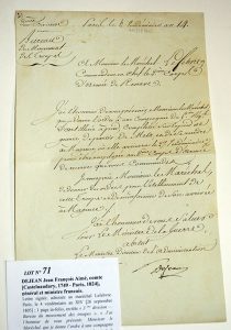 DEJEAN Jean François Aimé, comte [Castelnaudary, 1749 - Paris, 1824], général et ministre français.Lettre signée, adressée au maréchal Lefebvre. Paris, le 4 vendémiaire an XIV [26 septembre 1805] ; 1 page in-folio, en-tête