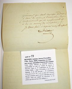 DENNIÉE Antoine, baron [Versailles, 1754 - Paris, 1829], inspecteur en chef aux revues, intendant général des armées françaises en Espagne.Lettre signée, adressée au maréchal Lefebvre, commandant en chef de l’armée de réserve à Mayence....