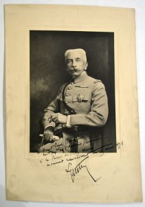 LYAUTEY Louis Hubert Gonzalve [Nancy, 1854 - Thorey, 1934], maréchal de France.Photographie dédicacée. 35 x 24 cm, taches. Belle dédicace à René Doumic