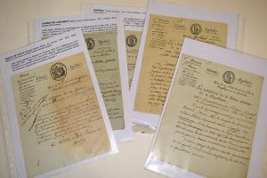 pages in-4°, en-tête imprimé à son titre avec vignette. Adresse, cachet et marque de franchise. Au sujet de la radiation de la liste des émigrés des époux Beuverand, de Noseroy (Jura). DONDEAU Nicolas [Fontaine-Denis, 1752 - Provins, 1834], ministre de la Police générale.2 lettres signées : LE CARLIER Marie-Jean-François-Philibert [Laon, 1752 - Paris, 1799], député à la Convention de l’Aisne. Lettre signée, adressée au commissaire du pouvoir exécutif du département de la Côte d’Or (Dijon). Paris, le 7 messidor an VI [25 juin 1799] ; 1 page 1/2 in-4°, en-tête imprimé à son titre avec vignette. Manque de papier n’affectant pas le texte. Marque de franchise. MERLIN DE DOUAI (Philippe-Antoine Merlin, dit) [Arleux, 1754 - Paris, 1838], député à la Convention du Nord, homme politique français.Lettre signée, adressée au ministre de l’Intérieur. Paris, le 6 vendémiaire an V [27 septembre 1796] ; 1 page in-4°, avec en-tête imprimé, vignette et marque postale