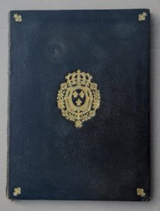 lys sur les entrenerfs et aux angles des plats, dentelle intérieure, tranches dorées (reliure du XIX° siècle de Petit-Simier). Lettre de Louis XIV, avant son départ pour la Guyenne puis les Pyrénées pour y signer la paix et épouser Marie-Thèrèse infante d’Espagne, dans laquelle il demande aux prévôt des marchands et aux échevins de «  faire que pendant notre voyage il ne se passe rien dans nostre dite ville au préjudice de nostre service, & du repos commun de nos subjets d’icelle  »Bon exemplaire aux armes de France. Coiffes et coins frottés.