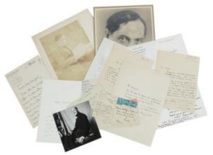 Ensemble de courrier et documents venant des archives de l’éditeur belge Pierre Aelberts (Marcel ACHARD (1 lettre), BECAN (2 lettres et une photo dédicacée), BAINVILLE (6 lettres), DUTOURD (6 lettres), GARCON (7 lettres et une conférence...